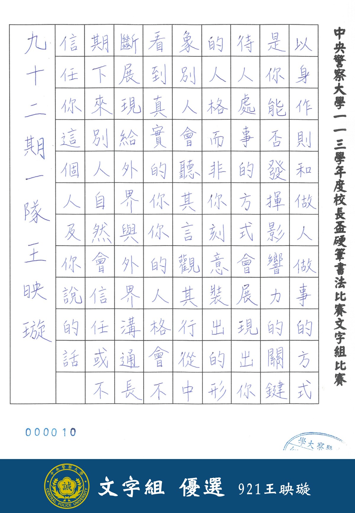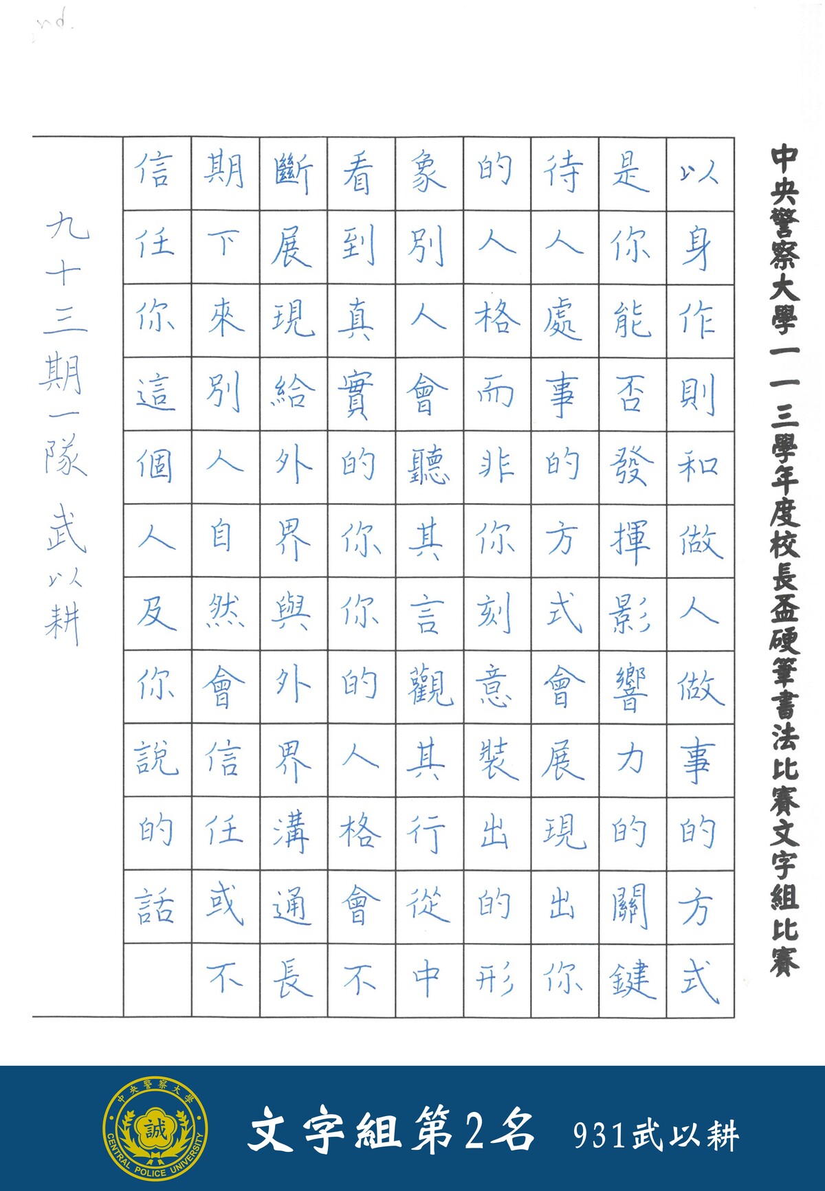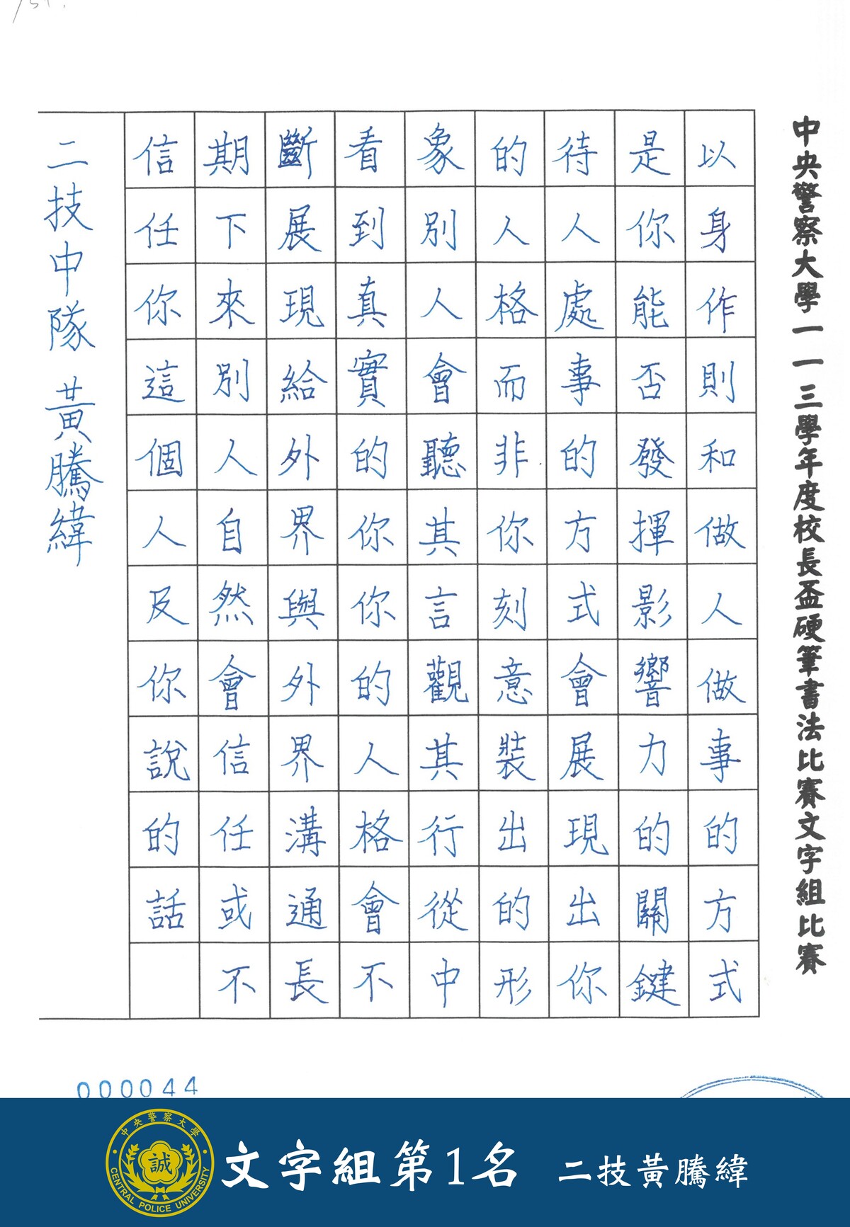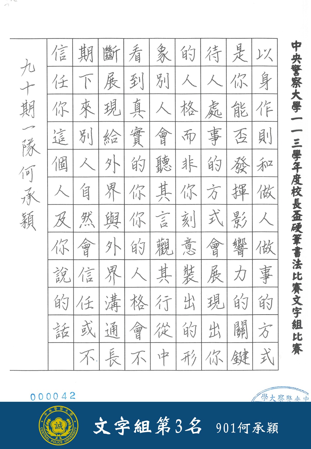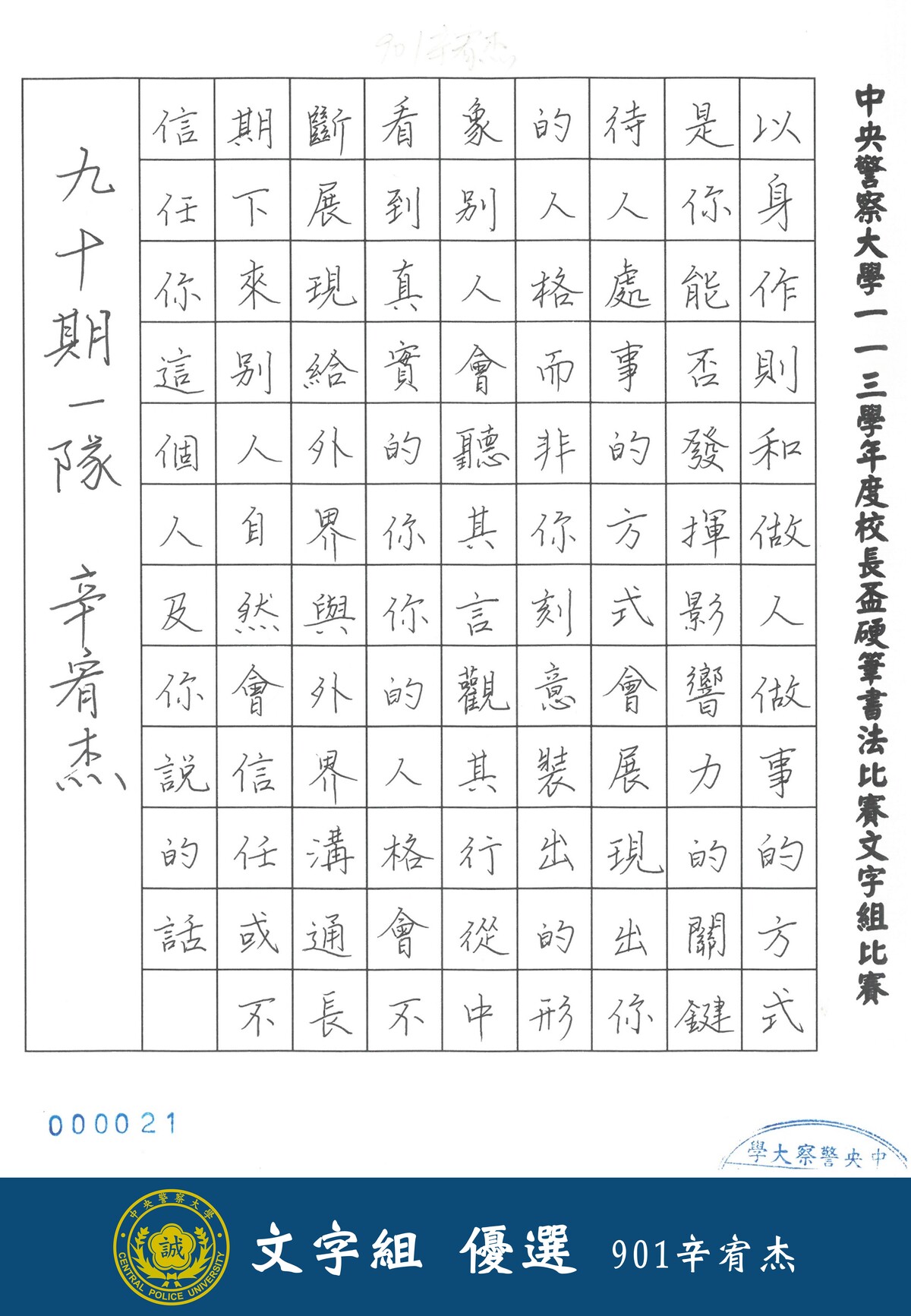 113學年度校長盃硬筆書法比賽線上展覽(文字組)